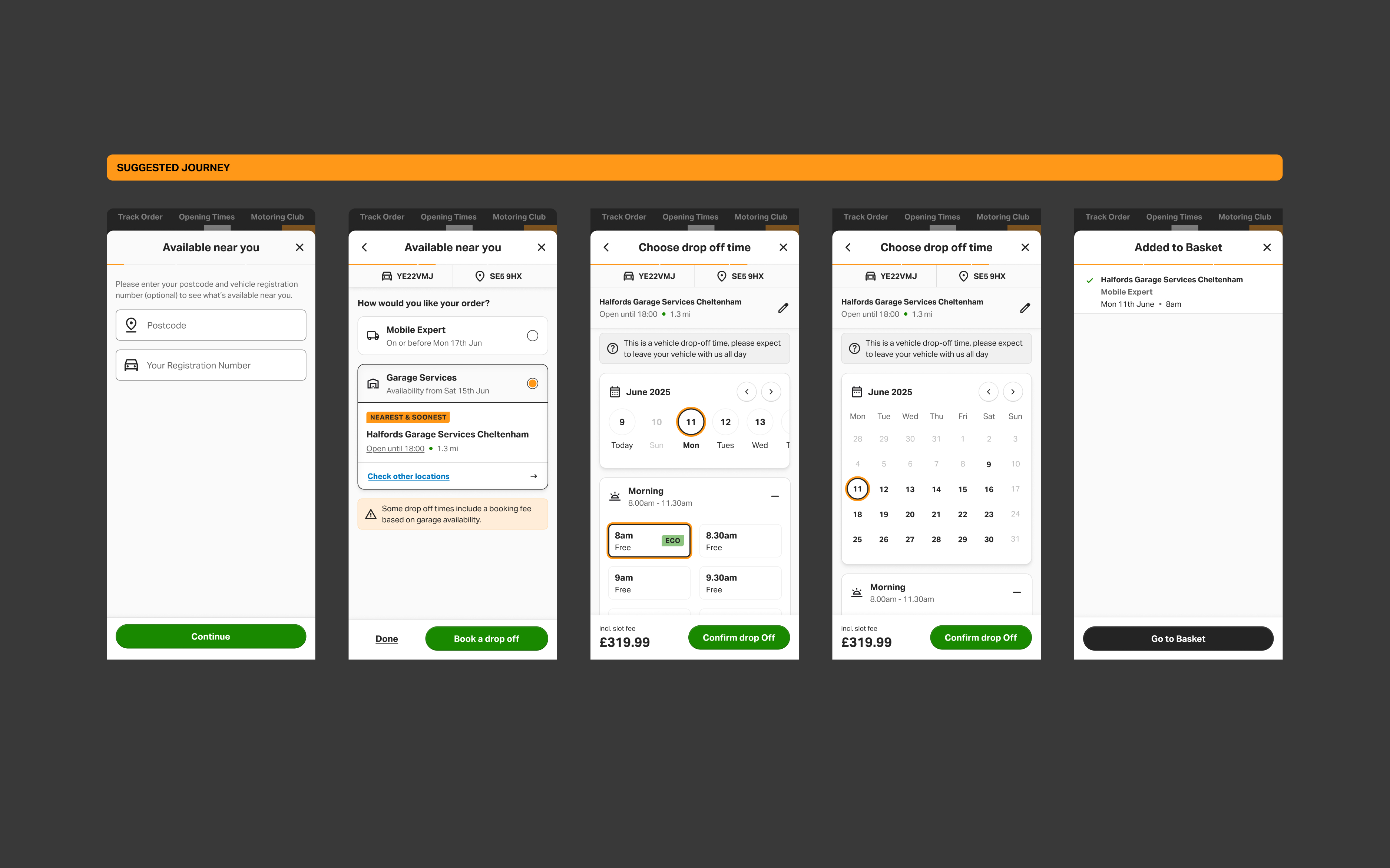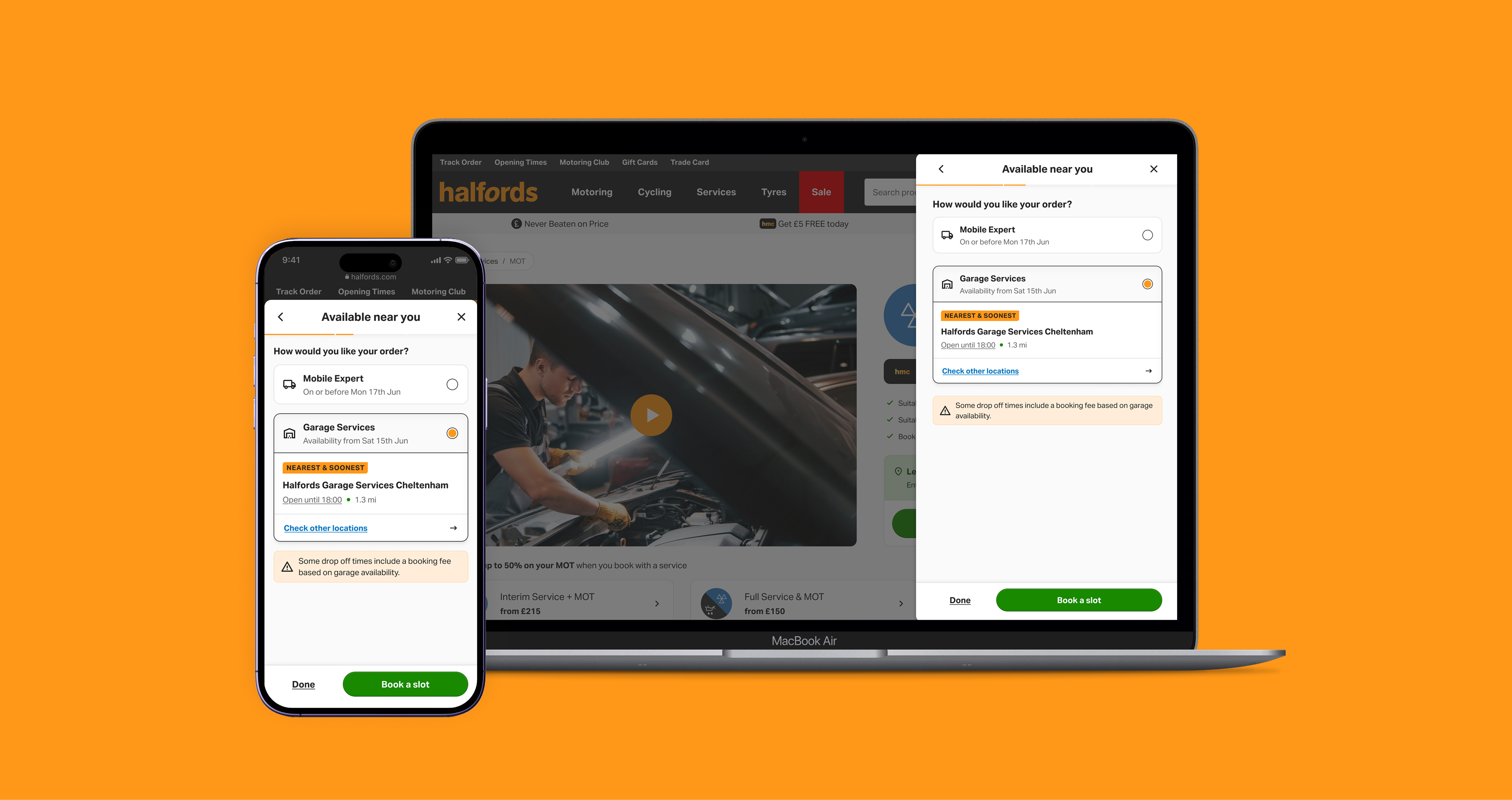 The redesign delivered a more intuitive and efficient booking experience. Usability improved, booking friction was reduced and the new modular system established a scalable foundation for future service expansion and design consistency across the Halfords ecosystem.