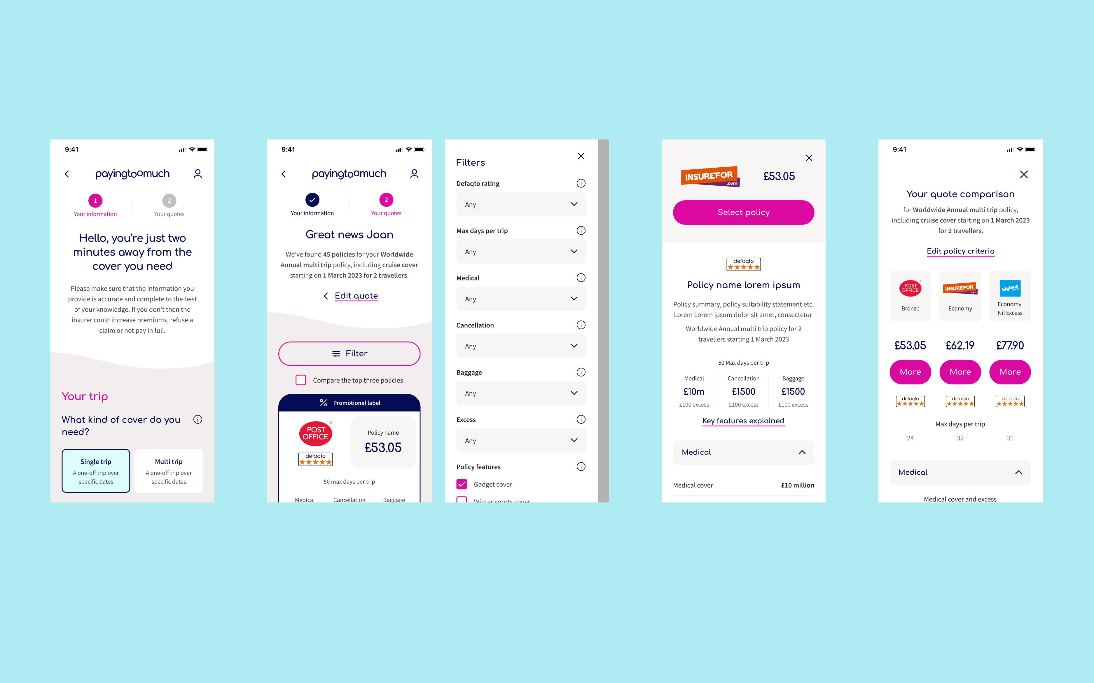 The site refresh modernised the platform’s interface and improved usability for a diverse audience. I aligned visual design and interaction patterns with accessibility standards and best practices, creating a seamless journey from policy comparison to purchase.