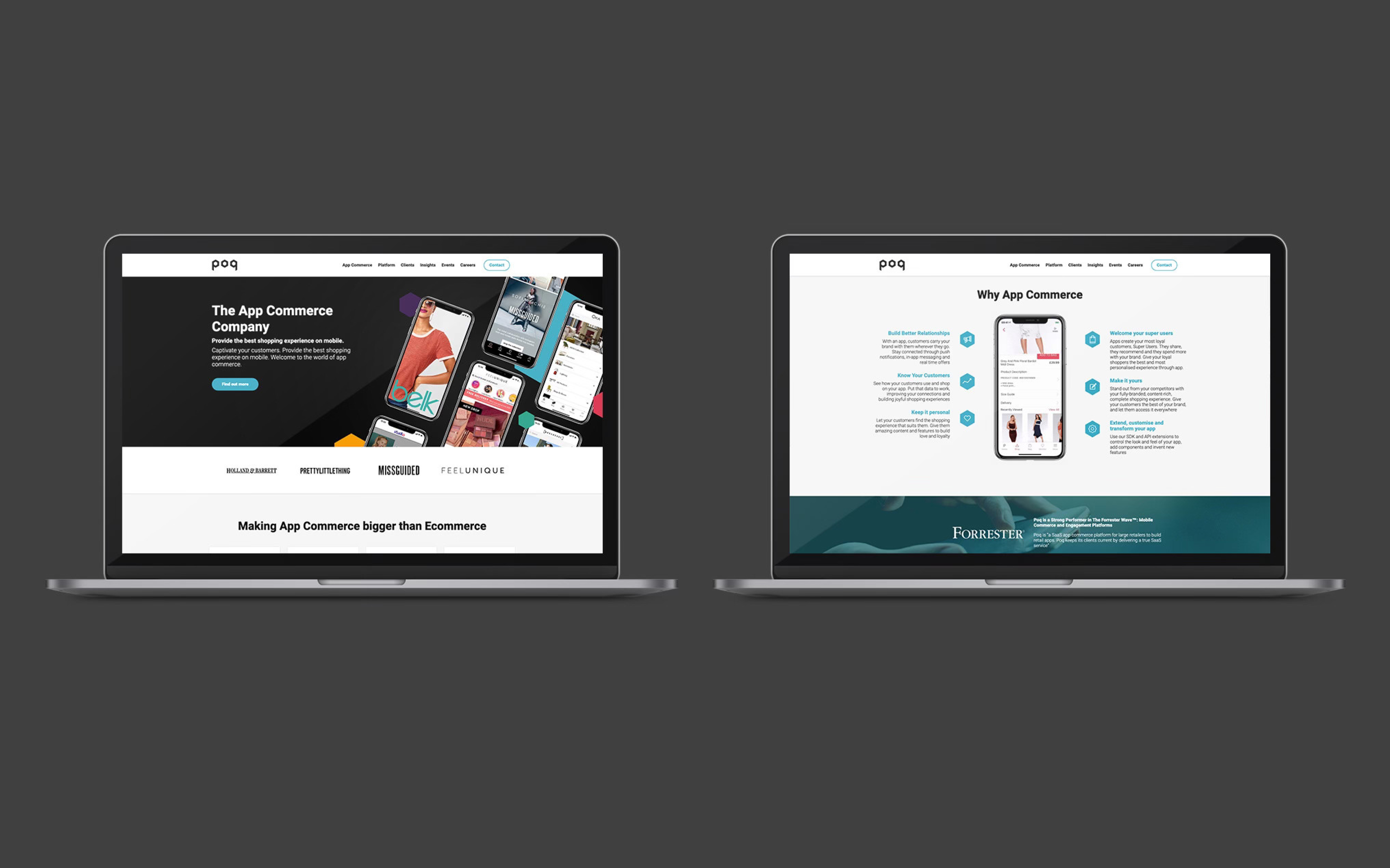 Evolving Poq’s brand identity across digital channels while designing client-facing RFPs, pre-app concepts, interfaces and marketing assets to unify the user experience and support business development initiatives.